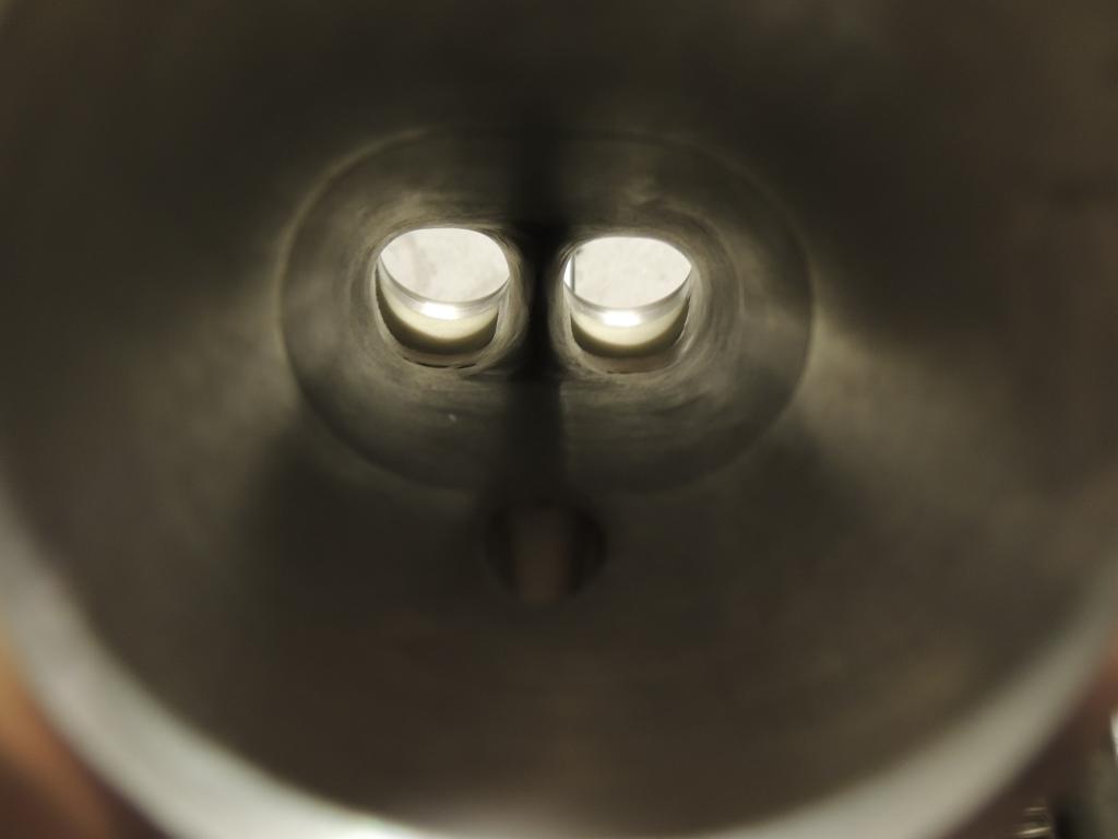 Lagde hull i min egen turboblokk i samma slengen. Litt vanskelig å se pga alt sponet, men det er faktisk rør-gjenger i hulla