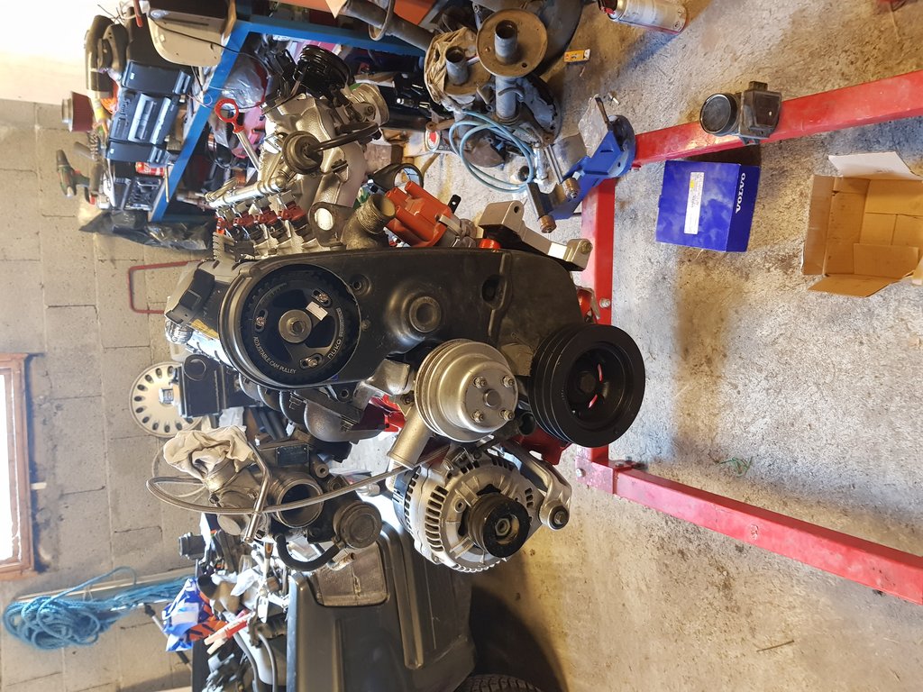 Så imorgen blir det å skru ut boltene til girkassa og skru løst motorfestene i traversen og heise ut motoren forhåpentligvis.