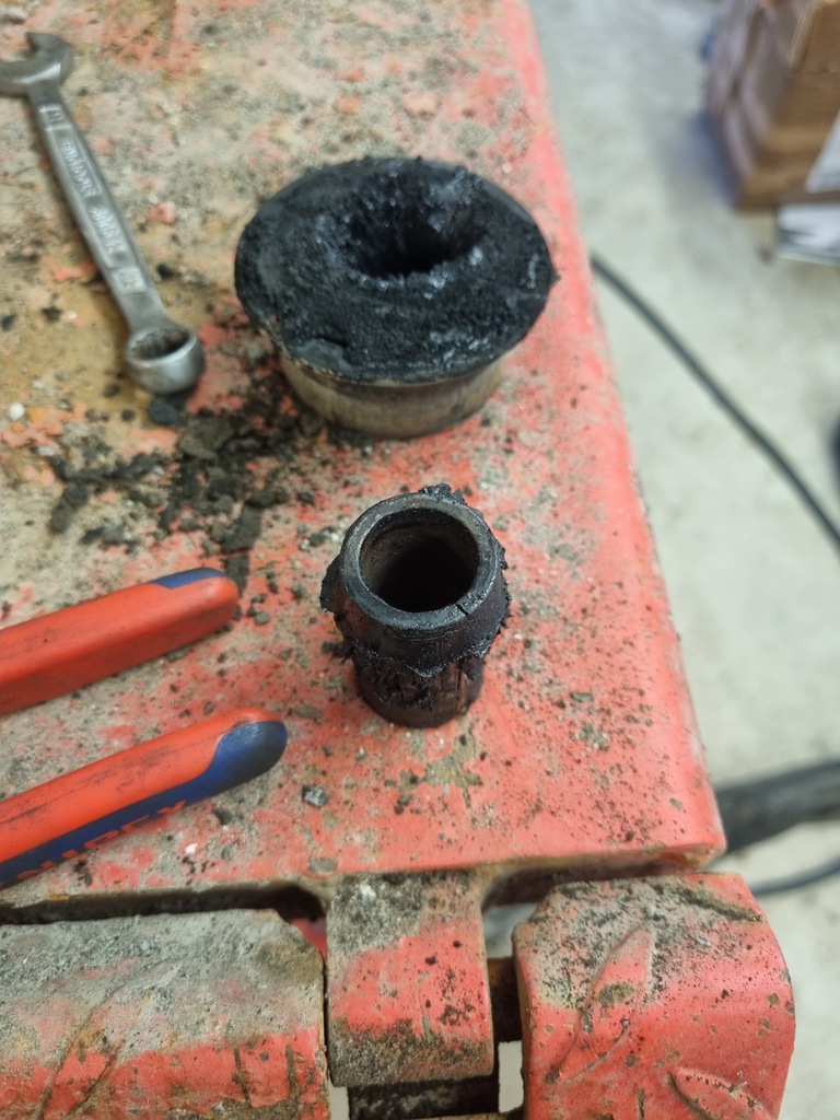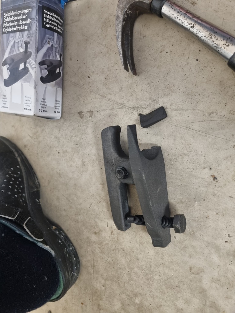 Begynt på andre siden og, her satt styrekulen no sjukt. Har sprayet litt smøring, så får en bare vente å se om det løsner.