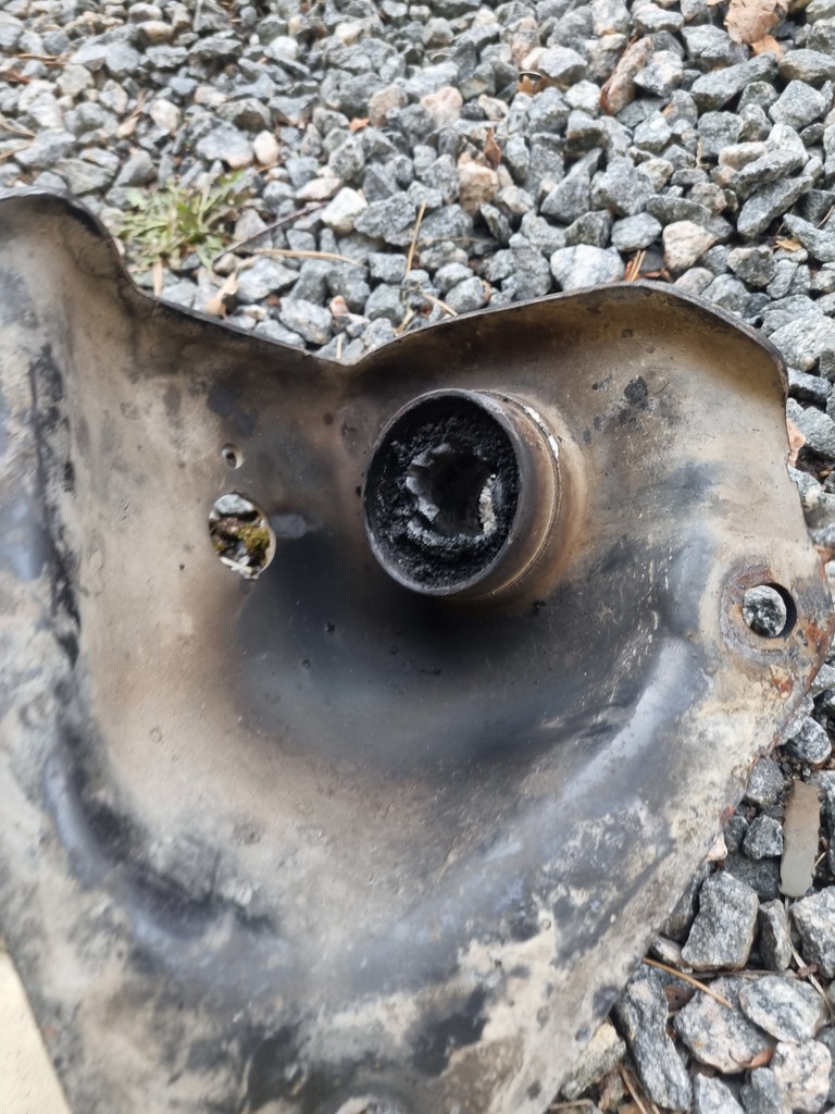 Diskuterte med en kompis om å ta bort alu-ringen på en eller annen måte, å så sveise inn en bunn-ring i stål. Får se hva vi kommer på :p