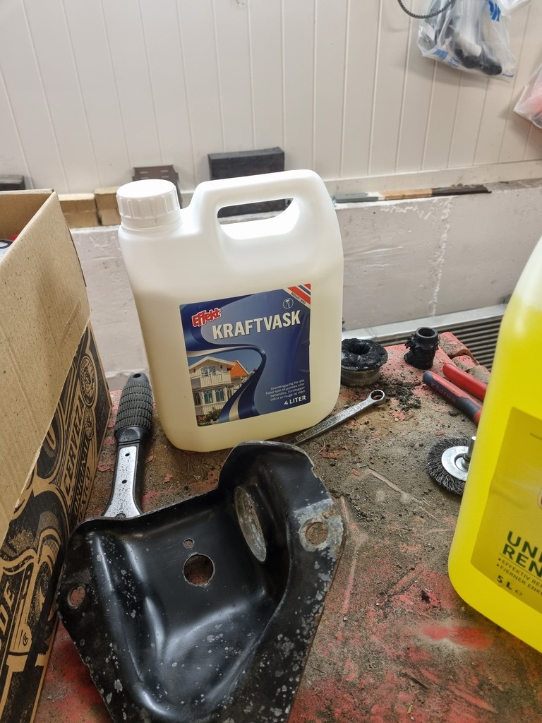 Tok en tur på Jula og THansen, så kjøpte litt større verktøy og en spraybox med brunox rustløser og primer. :D