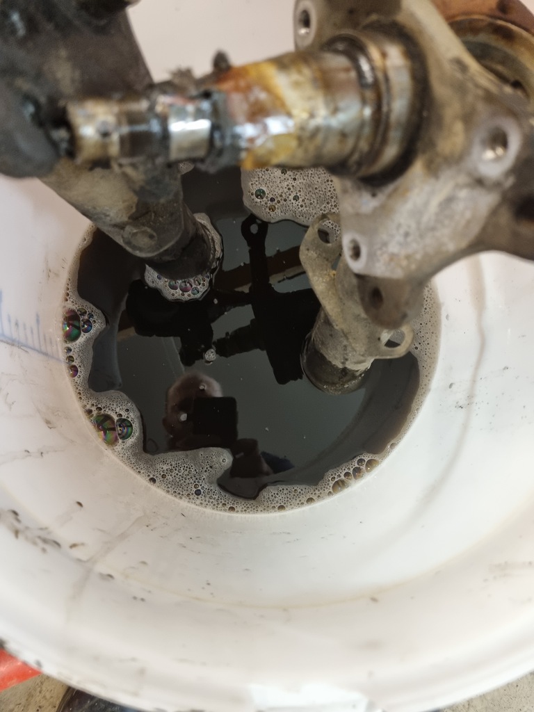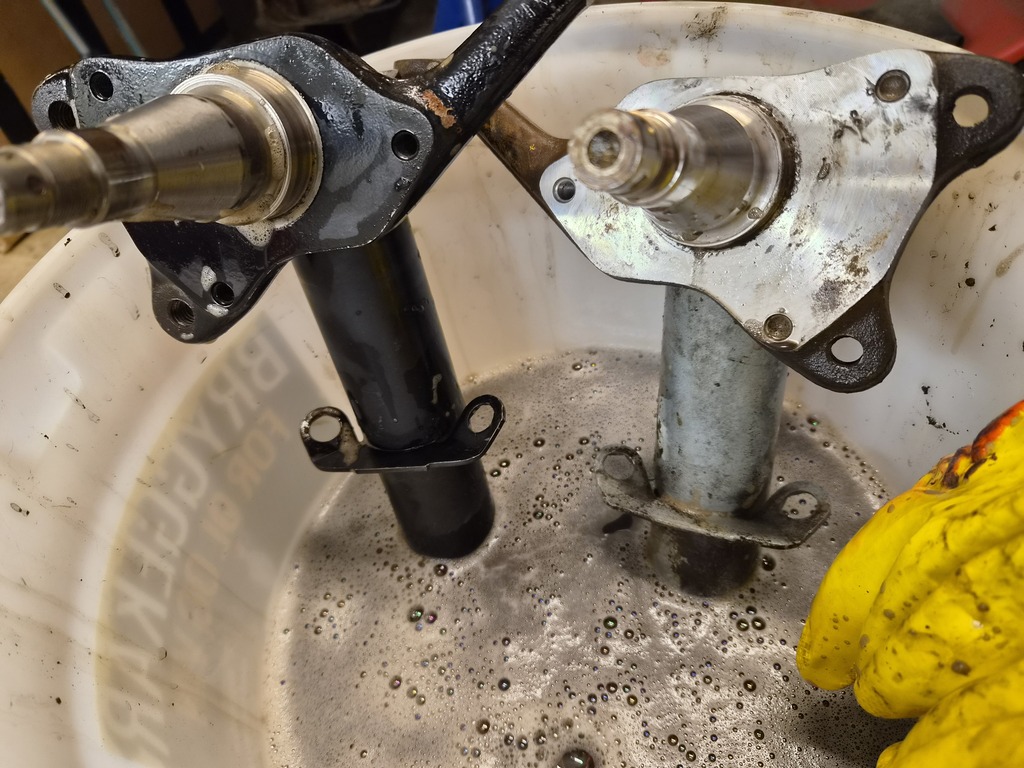 Så har beina og støvbeskyttelsene rundt lagerene fått ligget i en liten miks i 18 timer-ish, så ser bra skittent ut.