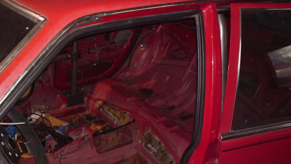har begynt og fjerne asfalt plater inne i bilen + tatt av forstillingen.
