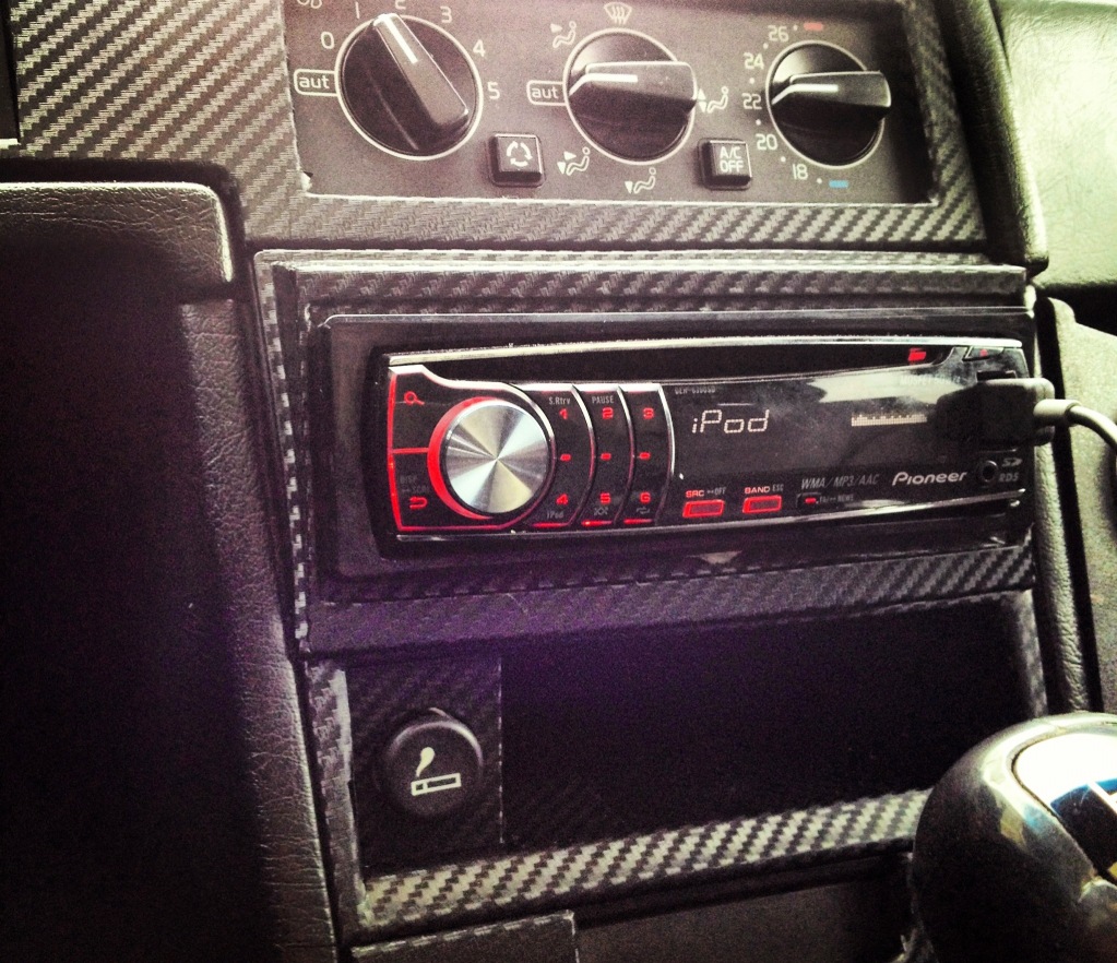 Da skal jeg samtidig ta ut hele midtkonsollen for å forme 3-radern inn i sida sånn at den blir "innbygd" :) har tenkt å forme den inn med tec-7, og slipe den litt ned så den blir mindre, for så å lakke alt svart :) har ikke sett det før, men tror det kan bli bra :)