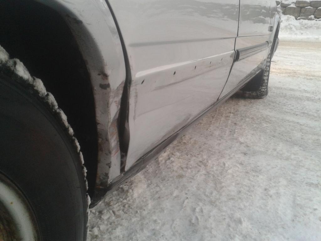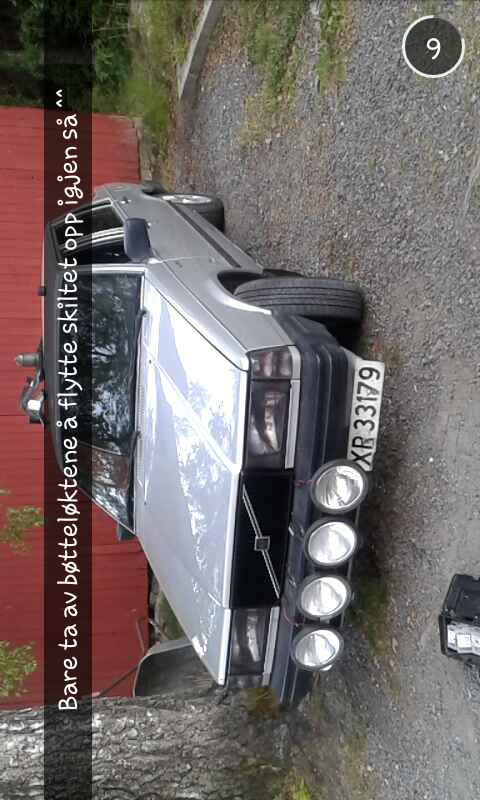 Når e handla den satt de stygge fæle chroma hjulbue listene på den. De har nå forsvinne av, pussa ned det lille som var av overflaterust i hjulbuen og flekka midlertidig med lakk frå biltema (som eg traff tårlig bra med). Bøtteløktene var det eg sjøl som satte på, men nå har to av de komme bak grillen, sammen med sølvfarga leppe fårran og litt andre detaljer :)