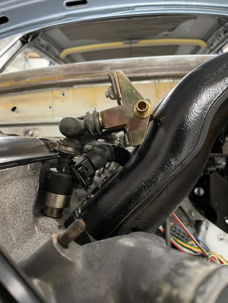 Heisan! Jobber også med e-innsug med dyser i topp. Sliter litt med å få originale fuel railen til å passe med de dysene jeg har. Kunne du delt noen bilder av festene du eventuelt laga ? Jeg har ikke sjans til få plass til orginale trykkregulatoren som du tilsynelatende har fått tel her[emoji848]