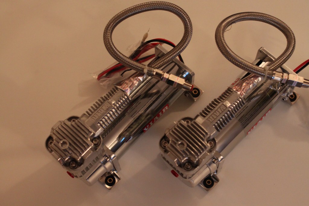 Og til slutt kompressorene. Kjøpte 2 stykk av de største de hadde. Med det så håper jeg å kunne fylle tanken relativt fort. I forrhold til 1 liten som vil stå å lade luft å bråke lenge. Synd de skal gjemmes bort, for de så ikke dumme ut: