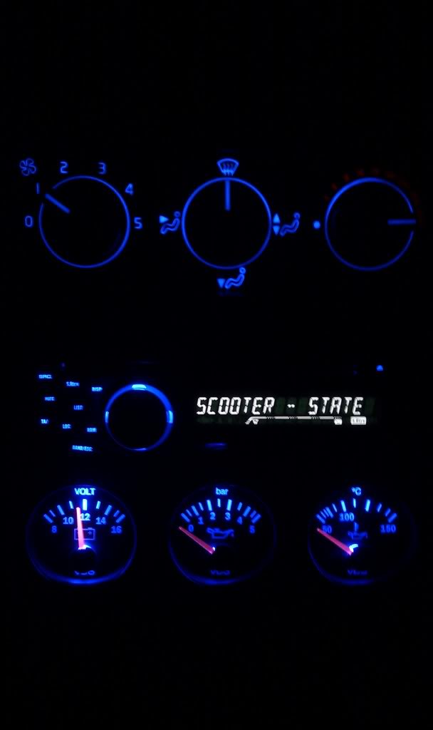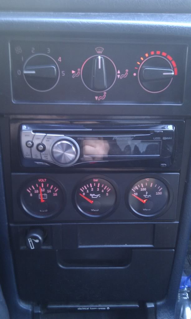 Her er 780 radiorammen+målerholder fra golf3 med selskap av 3stk vdo målere fra pedersens-racing, volt og oljetrykk/temp.
